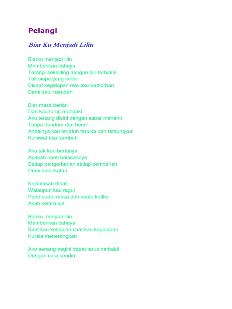 Lirik Lagu Kami Guru Malaysia Lirik Lagu Biarku Menjadi Lilin Pelangi