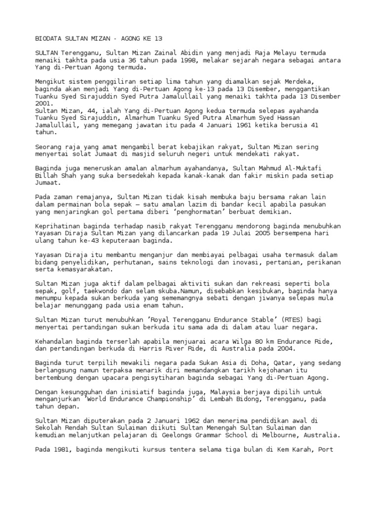 Biodata Sultan Mizan Zainal Abidin Dari Terengganu Biografi Profil Biodata
