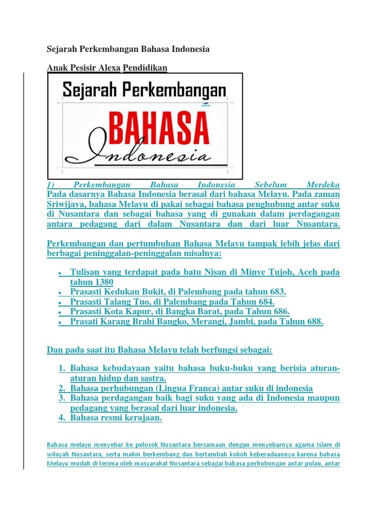 Sejarah Perkembangan Bahasa Indonesia