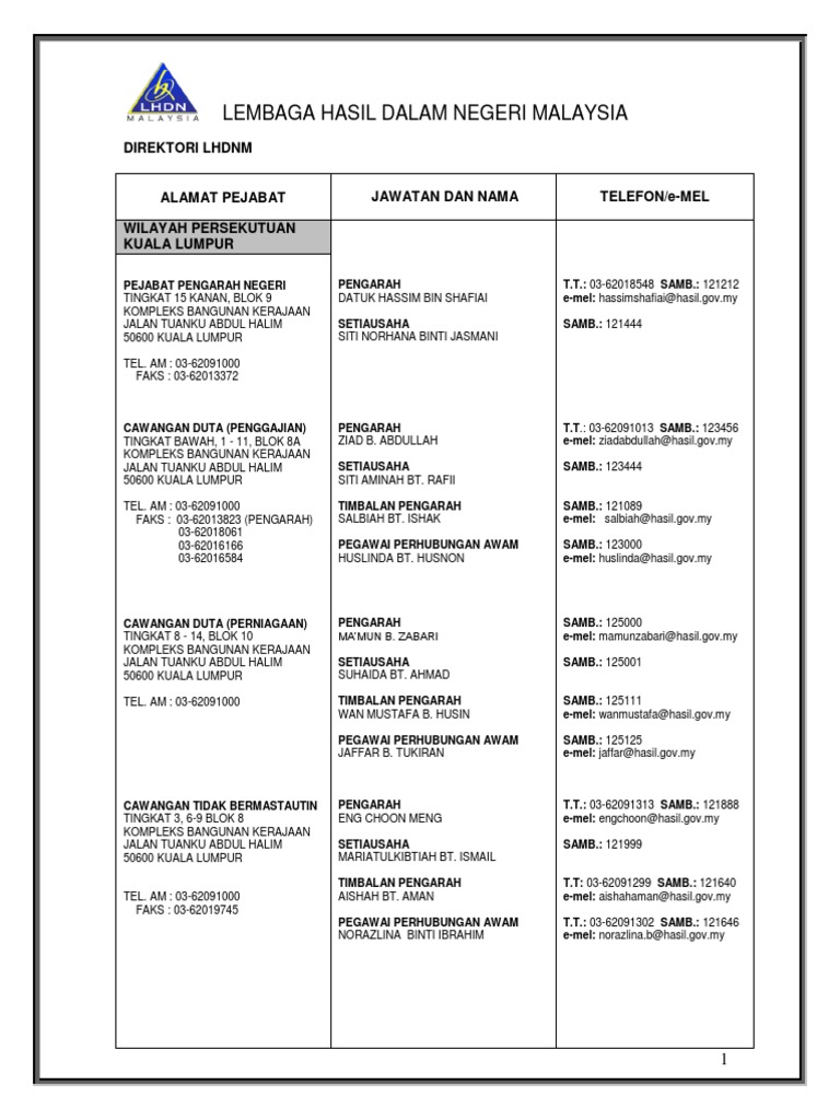 Alamat Dan Nombor Telefon Cawangan Lhdn Kuala Lumpur Putrajaya Layanlah Berita Terkini Tips Berguna Maklumat