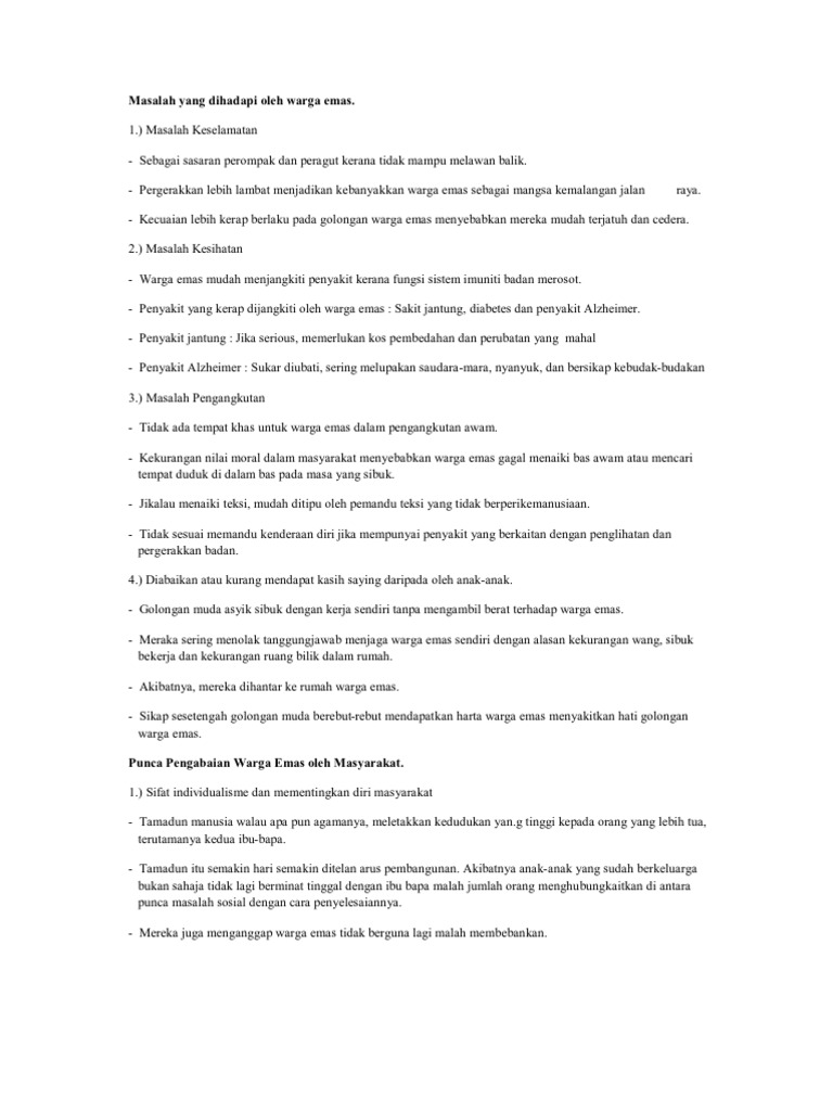 Masalah Yang Dihadapi Oleh Warga Emas