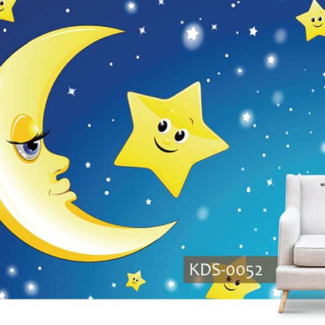 Grosir Wallpaper Dinding Custom 3d Motif Langit Bulan Bintang Warna Biru Kuning Putih Modern Shopee Indonesia