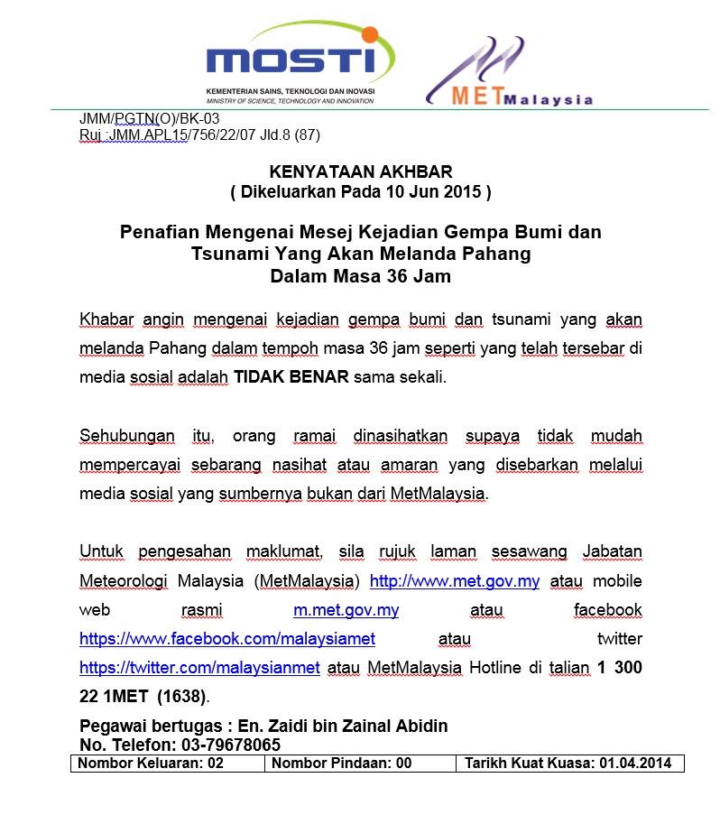 Gempa Bumi Di Pahang Hanya Khabar Angin H2o2
