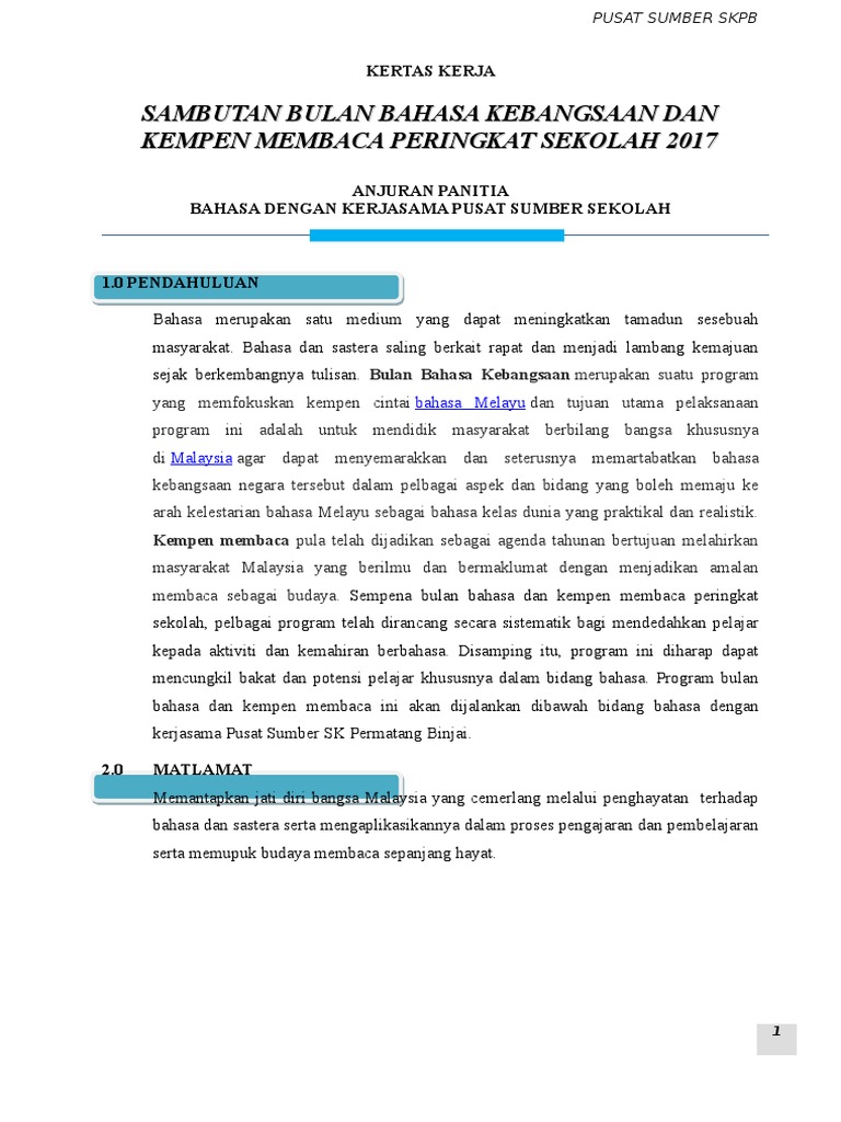 Kertas Kerja Bulan Bahasa Kebangsaan Peringkat Sekolah