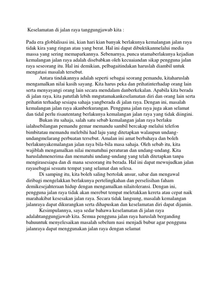 Kuras Kuras Kreatif Esei Keselamatan Jalan Raya Keselamatan Jalan Raya Tanggungjawab Bersama Atau Individu