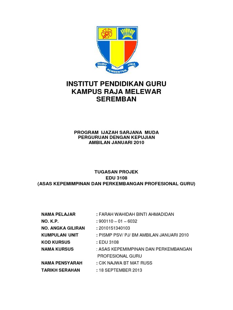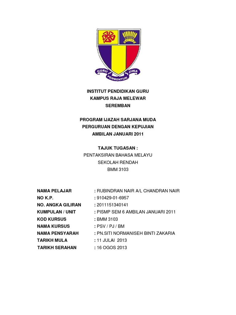 Doc Institut Pendidikan Guru Kampus Raja Melewar Jalan Sikamat 70400 Seremban Negeri Sembilan Program Ijazah Sarjana Muda Perguruan Pismp Santhiya Perisamy Academia Edu