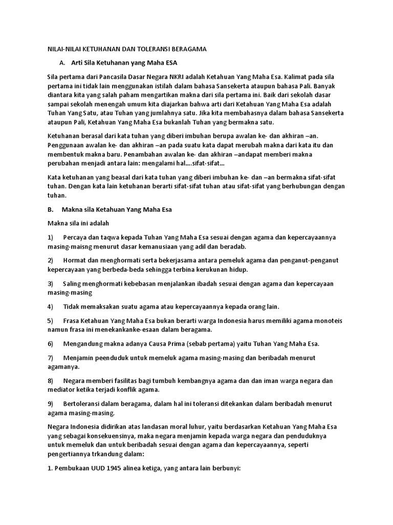 Nilai Kepercayaan Kepada Tuhan Dan Toleransi