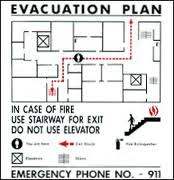 Kecemasan dan tempat untuk bersembunyi di tempat kerja anda. Laluan kecemasan perlu dilakarkan dan dipamerkan di tempat kerja. Mengenalpasti keadaan yang diklasifikasikan sebagai kecemasan bencana hingga memerlukan tindakan segera seperti pengusian evacuation bangunan.