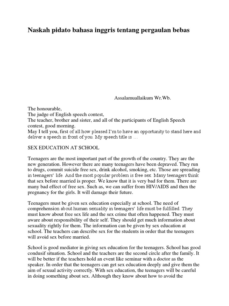 Naskah Pidato Bahasa Inggris Tentang Pergaulan Bebas Docx Sex Education Adolescence
