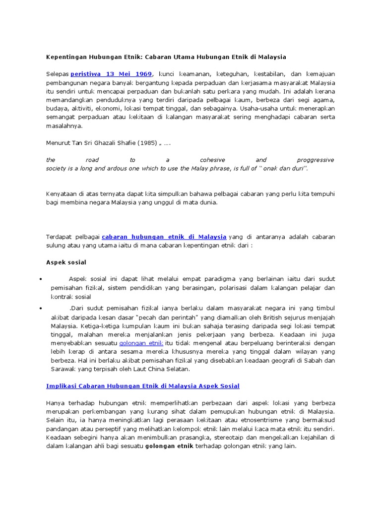 Hubungan Etnik Punca Implikasi Peristiwa 13 Mei 1969 Pdf Document